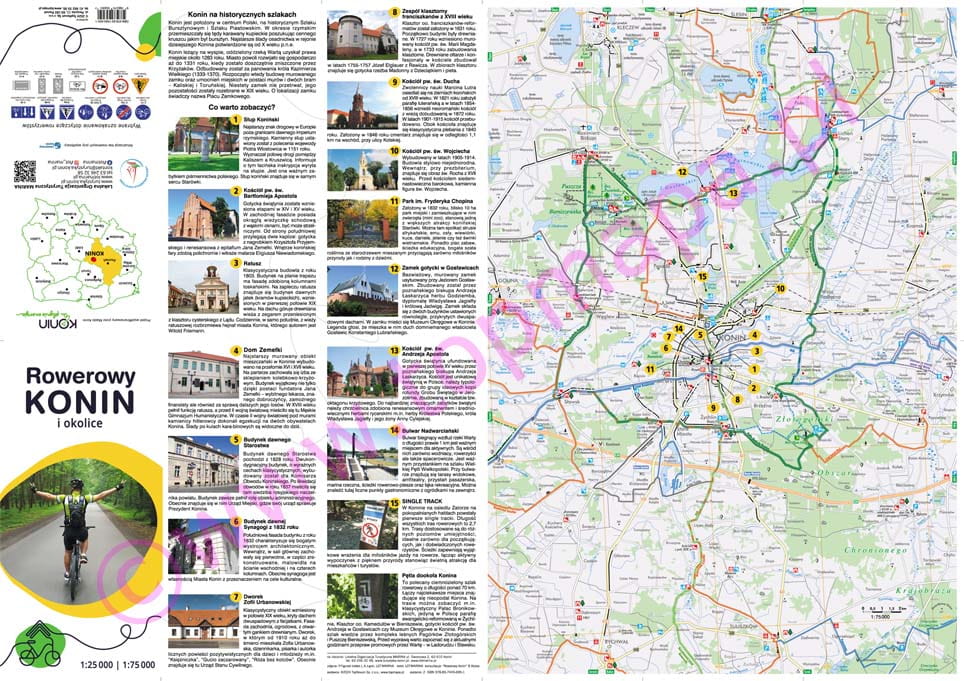 Drugie wydanie mapy Rowerowy Konin i okolice przygotowano na zlecenie Lokalnej Organizacji Turystycznej MARINA w Koninie. Na mapie przedstawiono dokładny przebieg wszystkich szlaków rowerowych, dróg rowerowych i pieszo-rowerowych z uwzględnieniem punktów naprawy roweru oraz stacji Konińskiego Roweru Miejskiego. Przedstawiono również opis oraz fotografie zabytków i najciekawszych miejsc Konina włącznie z odnośnikami do dokładnej lokalizacji ich na mapie.